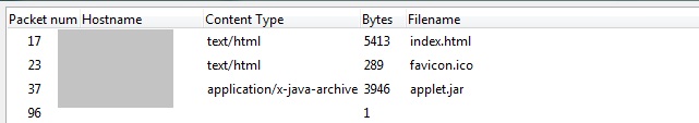 5. The malicious Java applet is downloaded like you see on the picture below. At this point, if your system is not vulnerable or is patched, the attack stops. From the user perspective, it is impossible to tell if the attack was successful or not.